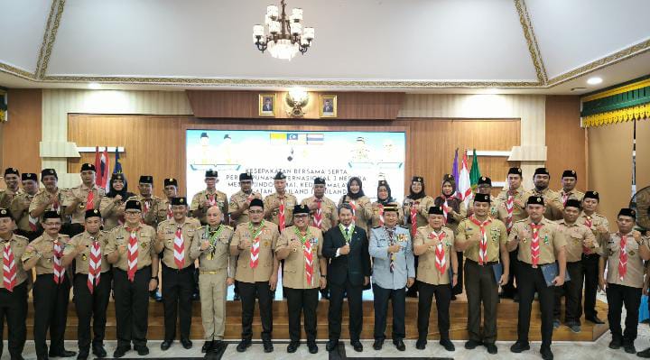 Demikian ditegaskan Ketua Kwartir Cabang Gerakan Pramuka (Kwarcab) Kota Medan, kak Topan OP Ginting dalam sambutannya pada acara Kesepakatan Bersama serta Perhimpunan Internasional 3 Negara yakni Medan (Indonesia), Kedah (Malaysia) dan Thailand Selatan (Thailand) di Rumah Dinas Walikota Medan, Jalan Jenderal Soedirman, Kota Medan, Jumat 2 Agustus 2024 malam.
