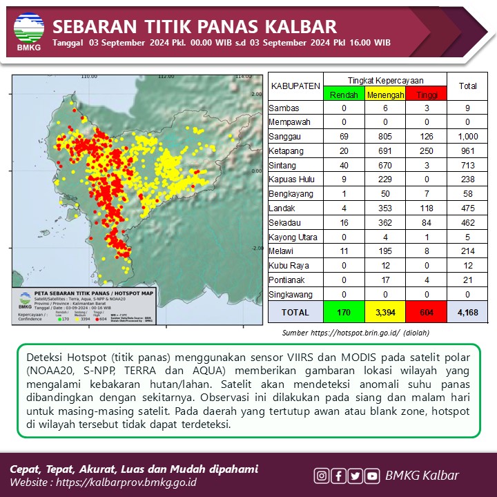 BPBD juga mencatat 805 sebaran titik panas dengan kategori sedang dan 69 titik panas dengan kategori ringan sehingga total titik panas di Sanggau tercatat 1.000 titik.
