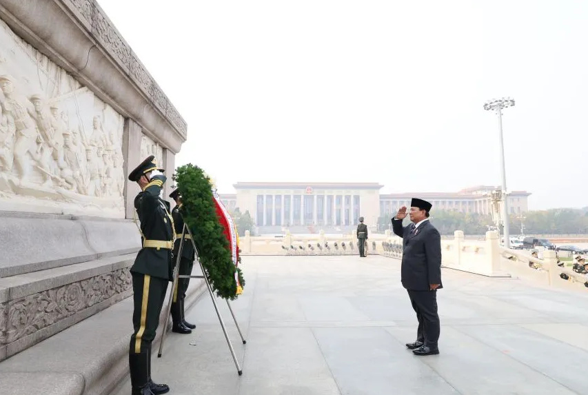 FAKTA GRUP – Presiden Republik Indonesia, Prabowo Subianto, melakukan penghormatan kepada para pahlawan China dengan meletakkan karangan bunga di Monumen Pahlawan Rakyat di Tiananmen Square, Beijing, pada Sabtu (9/11), sebagai bagian dari rangkaian kunjungan kenegaraan ke China.
